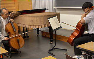 川原さん(Vc):藤森亮一先生(東邦音楽大学特任教授/NHK交響楽団首席奏者)のレッスン