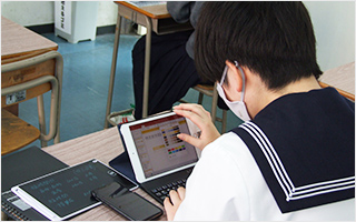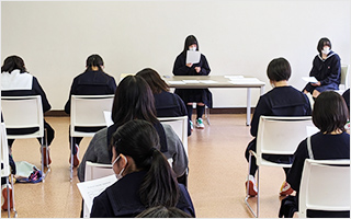自分の将来の目標を立て、そのための課題に取り組む「自主研究」というゼミ形式の授業があります。私は服飾の仕事に就きたいと思っているため芸術ゼミに所属しています。芸術ゼミでは実際に洋服を作る計画を立てています。自分の興味を掘り下げ、夢を見つける手掛かりになる時間です。(高3 AWさん)