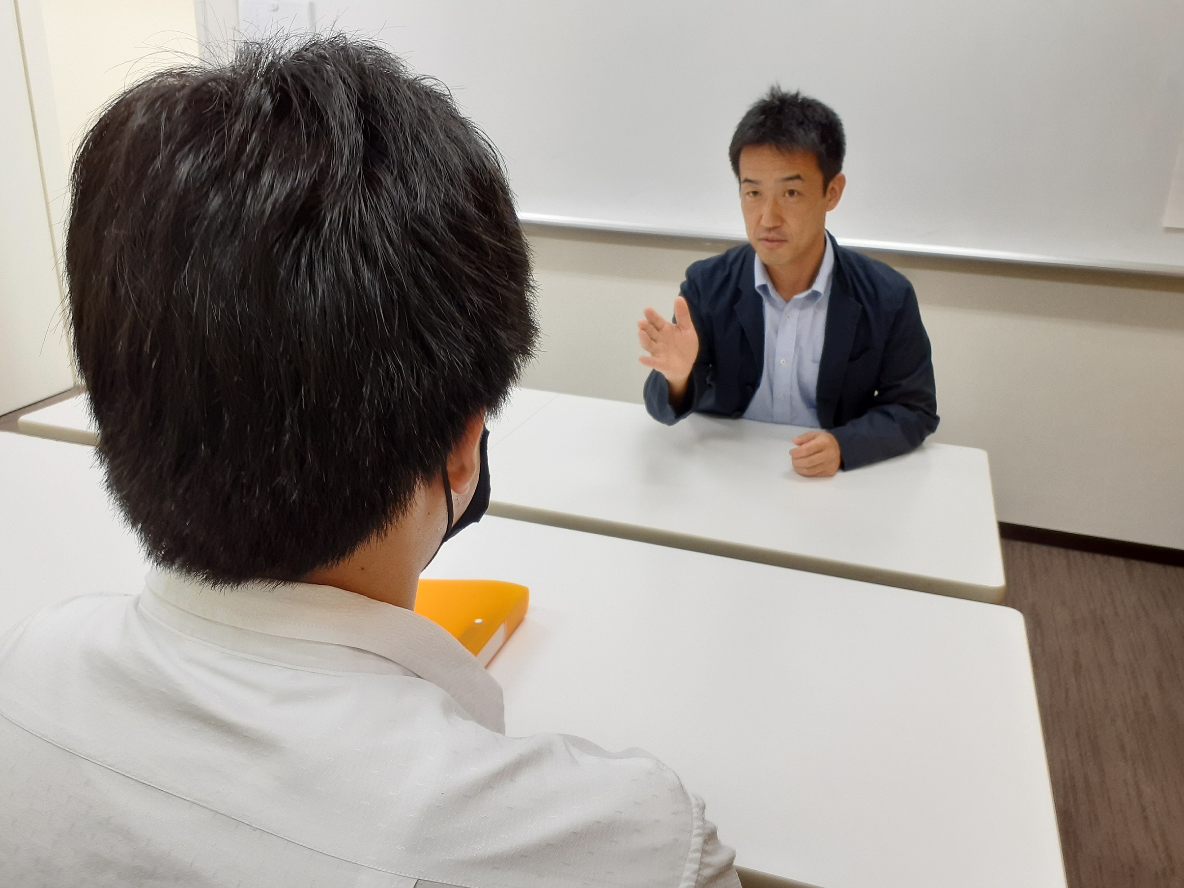 少人数制だからこそ出来る、個別カリキュラムの設定とサポート。生徒と密なコミュニケーションをとりながら進学・就職サポートを行います。面接対策では、1対1で入試でよく聞かれることや入退室・ノックの仕方といったマナーもレクチャー。小論文対策では専門教員が個別に指導・添削を行います。その他にも、共通テストや過去問対策の時間を取り、それぞれの進路・レベルに合わせて徹底的に進路サポートを行います。