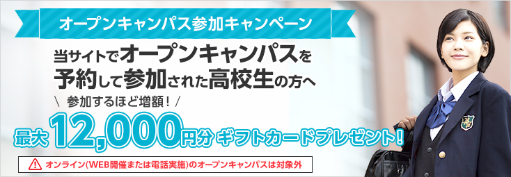 オープンキャンパス参加キャンペーンは予告なく変更または終了する場合がございます。