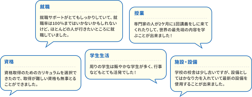 みん専には、卒業生の口コミが2万件以上掲載されています!学校の雰囲気など実際に通った卒業生にしか分からないことが、口コミで知ることが出来ます!