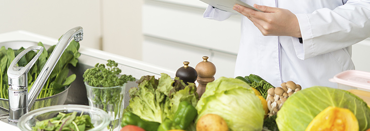 献立作成、食材発注、原価計算など大量調理の一連の流れを学ぶ。